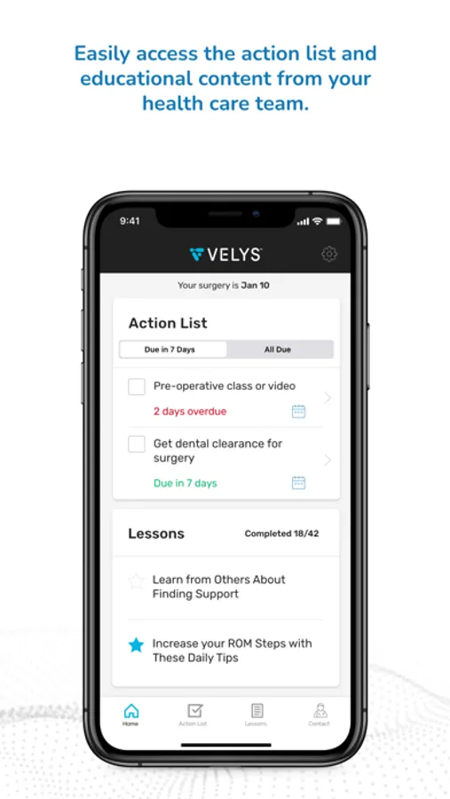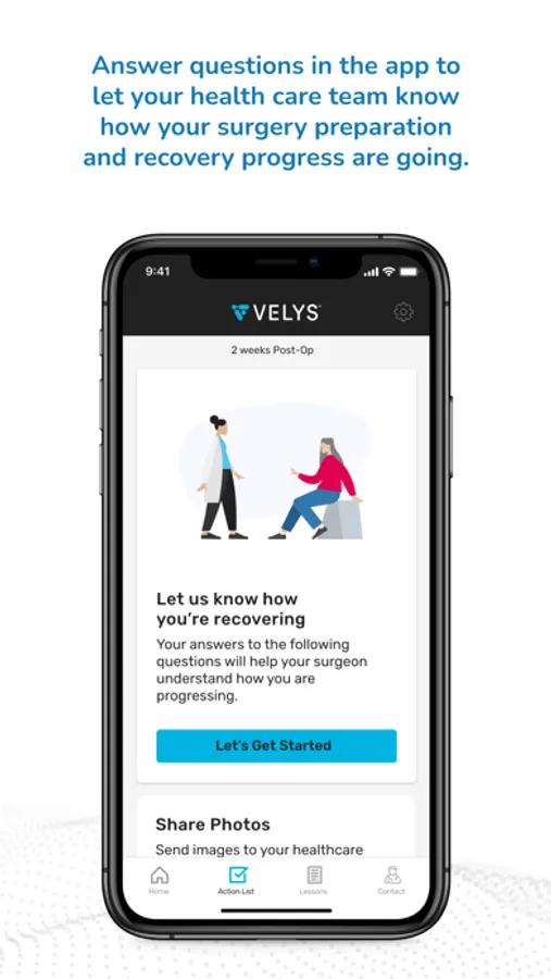 The VELYS™ Patient Path - Patients app partners with you to help keep you informed, educated, and on track in your recovery.