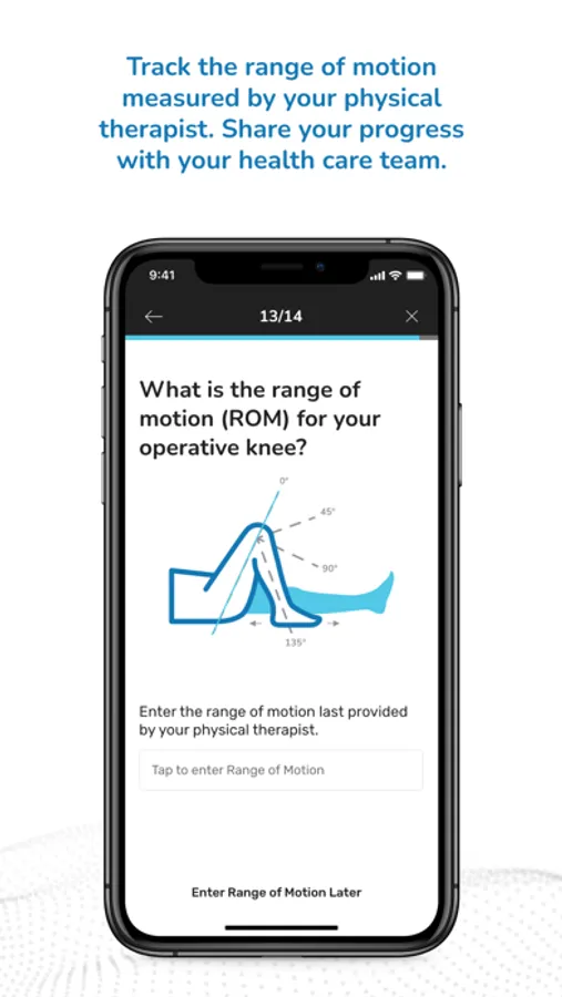 • Progress tracking, including range of motion.