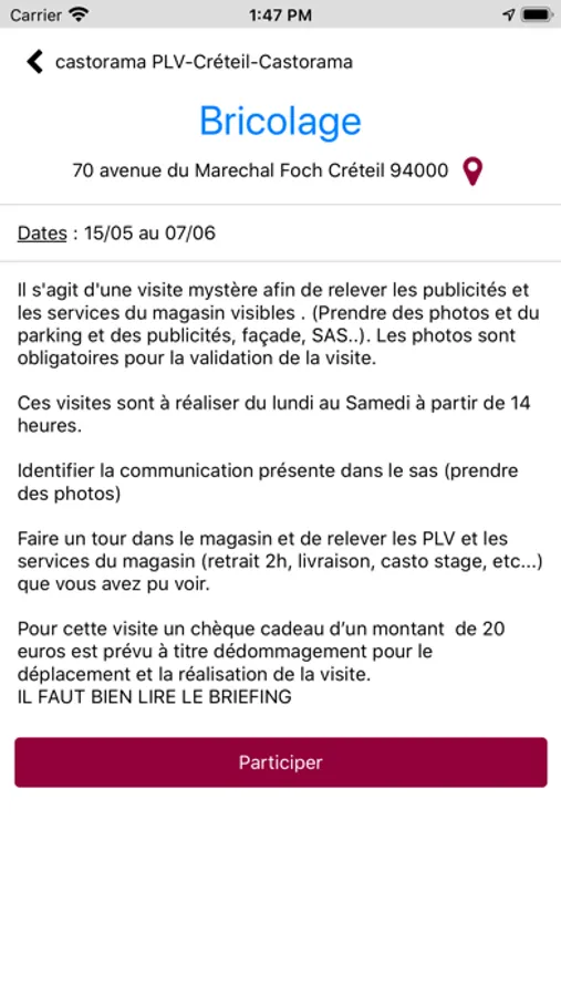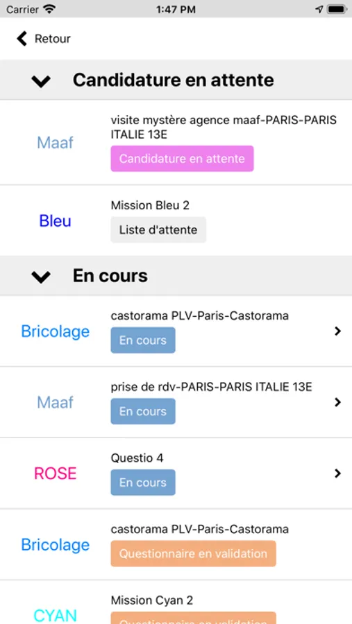 L’application vous permet de trouver des missions proches de chez vous et de les réaliser en remplissant un court questionnaire sur vos différentes observations.