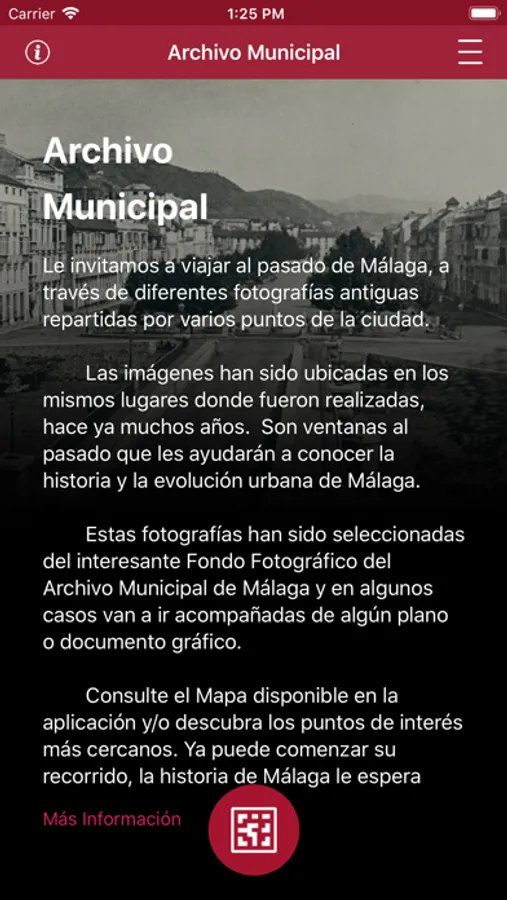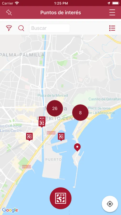 Consulte el Mapa disponible en la aplicación y/o descubra los puntos de interés más cercanos. Ya puede comenzar su recorrido, la historia de Málaga le espera