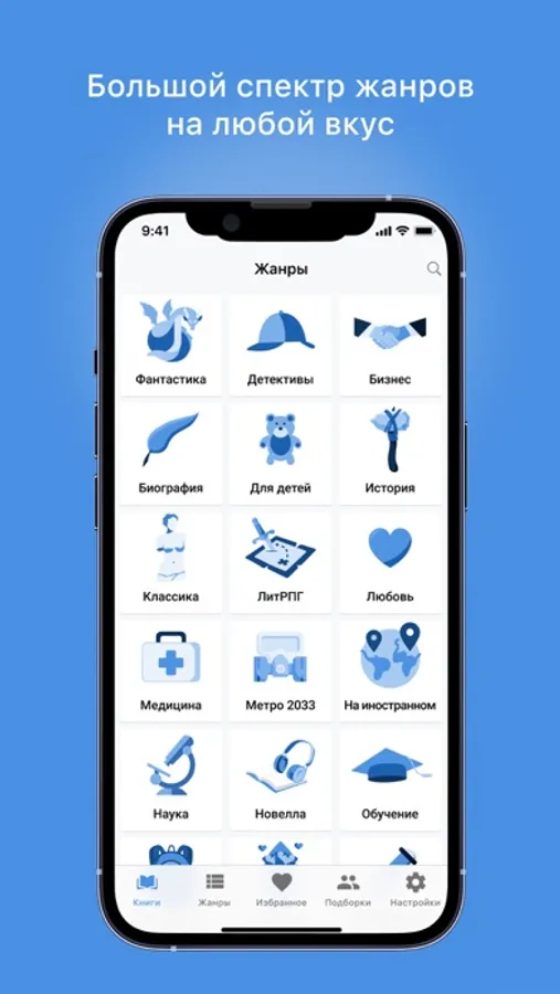 В приложении “Аудио книги на любой вкус” собраны книги разных жанров, поэтому Вы с легкостью сможете подобрать себе книгу на любой вкус!