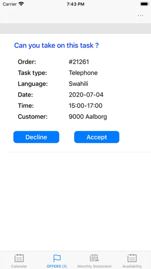 The Nordtra app is developed by the interpretation agency Aats ApS with the aim of connecting people (private individuals or companies) with interpreters. Once downloaded, a user profile can be created.