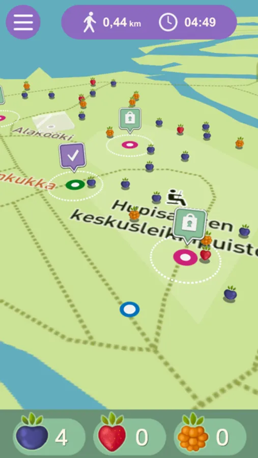 Kartalla on pisteitä, jotka kertovat lisätietoa ja tarinoita tai haastavat kysymyksillä. Kartalla näkyvät nuolet ohjaavat sinut pisteeltä toiselle. Pystyt poimimaan kartalle ilmestyviä objekteja menemällä niiden luokse. Niitä tarvitaan joidenkin kartan pisteiden avaamiseen.