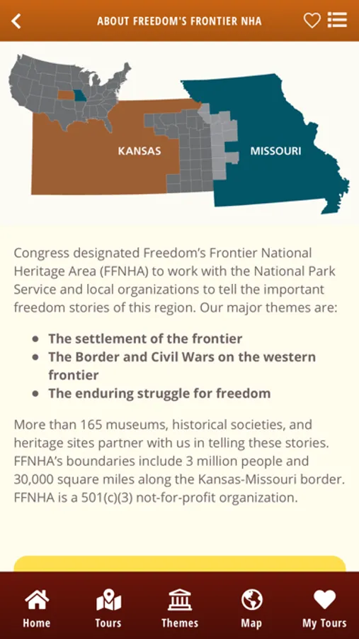 Whether you want to ride with the settlers as they headed west, experience the passions that nearly tore our country apart during the border and civil wars, or share the moving story of the enduring struggle for freedom, we'll get you to the most dramatic and exciting sites in Freedom's Frontier National Heritage Area.