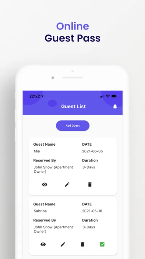 - Create your guest list and manage their access to the community.
