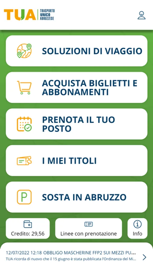 Benvenuto nel mondo di TUABRUZZO, l’app che, con pochi e semplici passaggi, ti permetterà di consultare gli orari e pianificare i tuoi viaggi, acquistare ed utilizzare biglietti ed abbonamenti direttamente dal tuo smartphone, pagando con carta di credito o caricando il tuo “borsellino elettronico”. Non è tutto, con TUABRUZZO potrai anche pagare e prolungare la sosta.