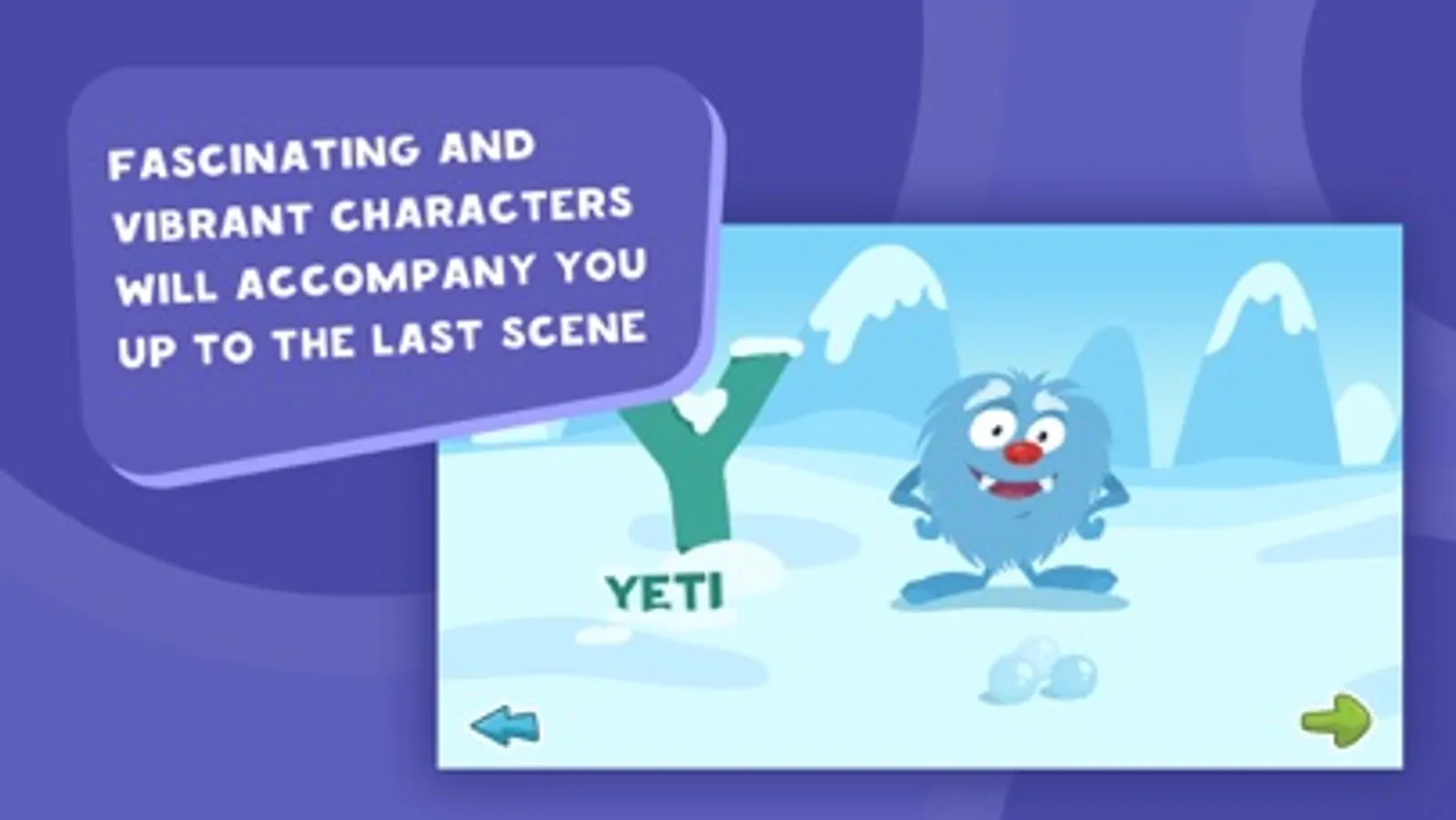 You will encounter fascinating and memorable characters; each letter is accompanied by a playful tune, beautiful design and a cartoon mini-game.