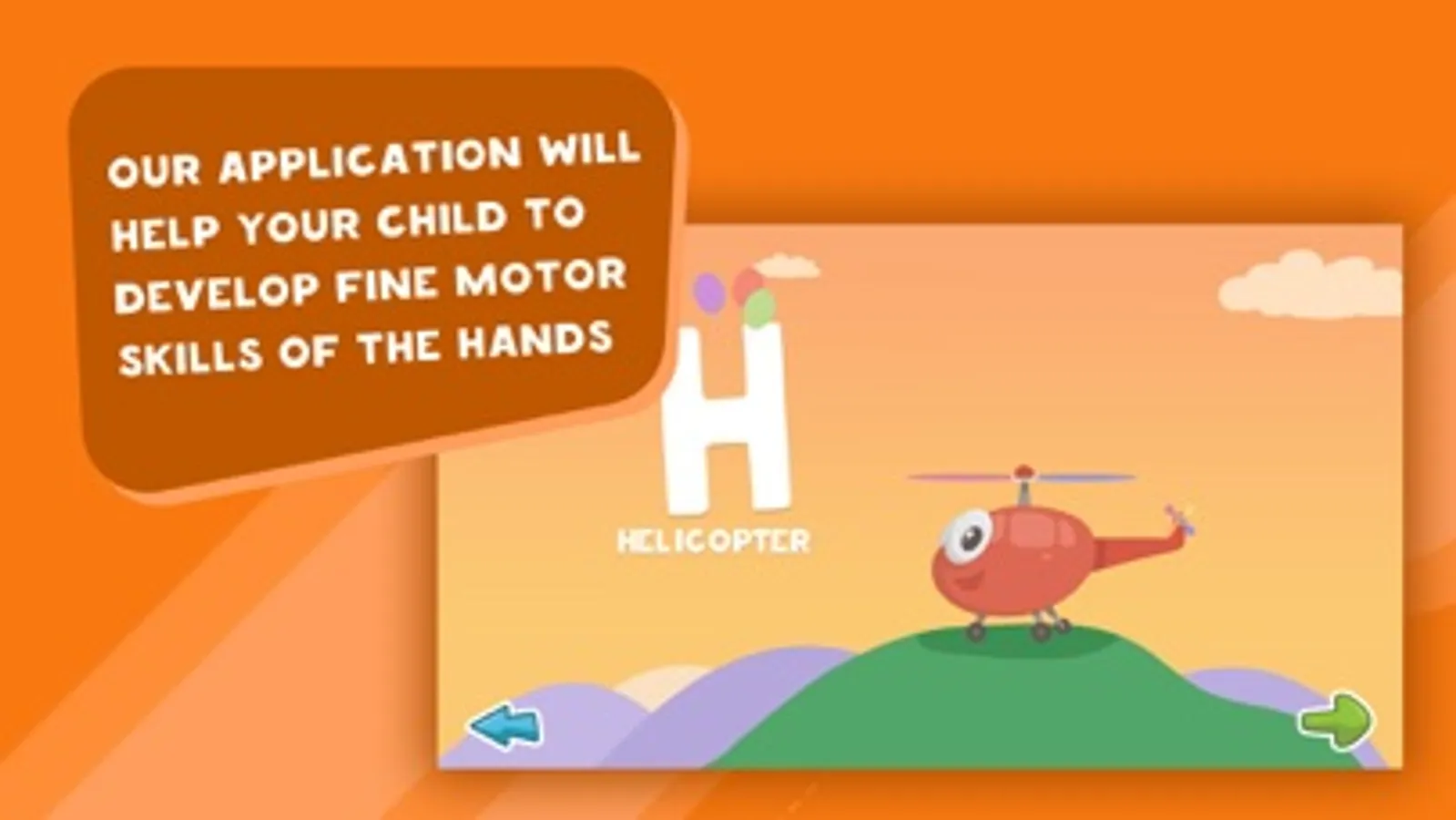 Our Application is designed to familiarize your child with all the letters of the English alphabet in a fun and interesting way. Learning is done in the form of a game.