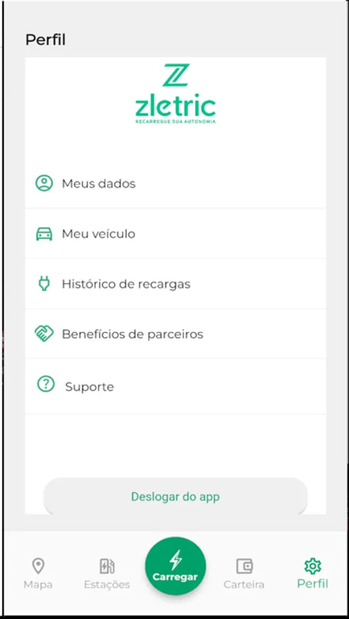 O app zletric permite aos proprietários de veículos elétricos carregar seus veículos de forma simples e econômica. O aplicativo permite achar pontos de carga, habilitar um carregador utilizando o QR code e ver o histórico de cargas do usuário.