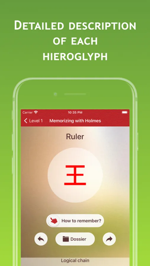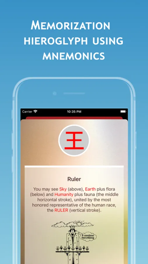 - Consistent memorization of the image and meaning of the hieroglyph using "code phrases" and other techniques of mnemonics for those who do not have an ideal "photographic" memory.