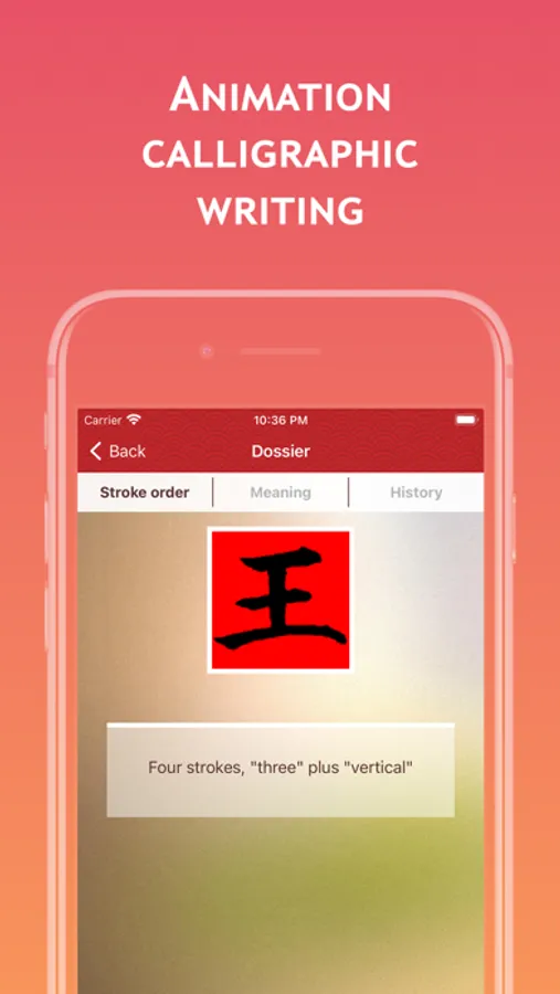 - Animation of calligraphic characters for those who are not indifferent to the high art of calligraphy and would like to raise their fine motor skills (the interaction of the brain and hands) to a qualitatively new level.