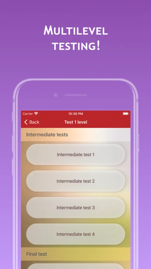 - Multilevel testing for those who want to test their abilities and learn how to solve complex problems.