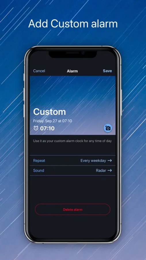 - Of course you can also use it as your custom alarm clock for any time of day.