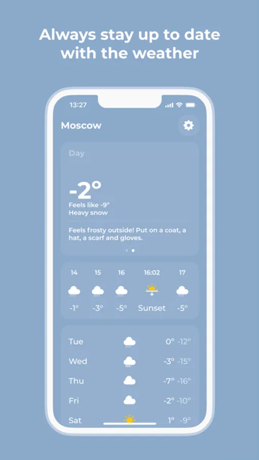 Besides that you can specify your weather feeling, which helps the app to suggest the best clothing options and feels like temperature for you. And don’t forget to use notifications, with them you'll always be informed with the forecast and recommendations on what to wear.