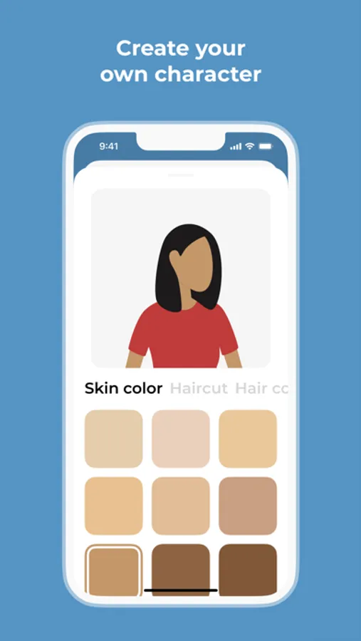 To make it more fun, the character can be customized by choosing the gender, skin color, hairstyle and beard style. You can also add all the clothes of all the different colors you have in your wardrobe.