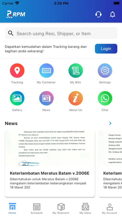 RPM Trans adalah Tracking Application pengiriman barang bagi pelanggan dari PT Rajawali Putra Maritim. Melalui aplikasi ini pelanggan dapat mengetahui status pengiriman barang, status kontainer, dan tagihan yang dimiliki oleh pelanggan. Selain itu, pada aplikasi ini terdapat pula fitur - fitur yang dapat memudahkan pelanggan untuk mendapatkan informasi perihal jadwal keberangkatan kapal dan notifikasi.