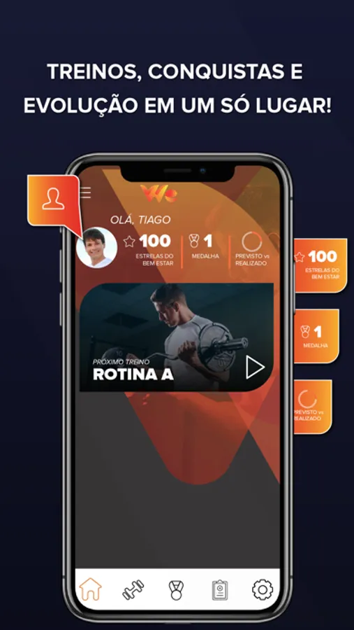 Utilizamos tecnologia e análise do comportamento humano com o objetivo de estimular e gerar maior engajamento dos usuários aos treinos. O App acompanha o antes, o durante e o pós-treino, identificando os sinais de evolução e motivação dos usuários.