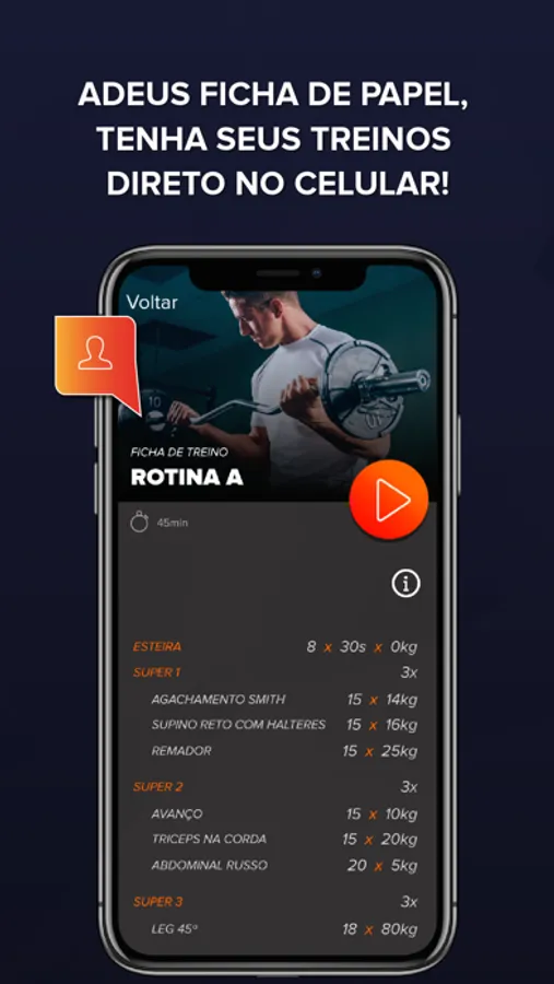 - Realizar check-in sem contato, direto no aplicativo - caso treine em uma academia cliente da plataforma.