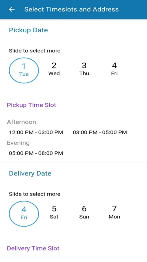 Step 5 - Choose the date and time slot for your order to get picked /delivered as per your convenience.