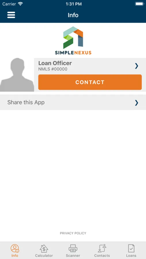 Now any time a real estate agent or home buyer needs to calculate payments for an FHA, Conventional, Jumbo, Rural, or VA loans, they can with SimpleNexus. And best of all, your contact info is just a tap away. It can't be any easier for you to stay "top of mind" in the real estate community. "I give my application to every Realtor and potential borrow that I work with. Realtors use it for calculations on walk-throughs, because they don't like trying to calculate the MI. Borrowers like it because it is so simple, and it provides accurate calculations in determining their monthly costs. It is like giving out a business card that no one will lose." - Brad Mabey, SLC. Getting Your Own Customized Mortgage App: Sign Up at SimpleNexus.com with your contact info and logo and we will provide you your own installation link. Give the installation link to your realtor friends and have them download the app. Once installed, the app is your own virtual business card - and your contact info is simple tap away. If you have any questions, please contact us at support@simplenexus.com or visit our website http://www.simplenexus.com