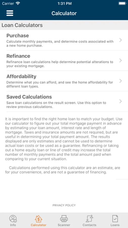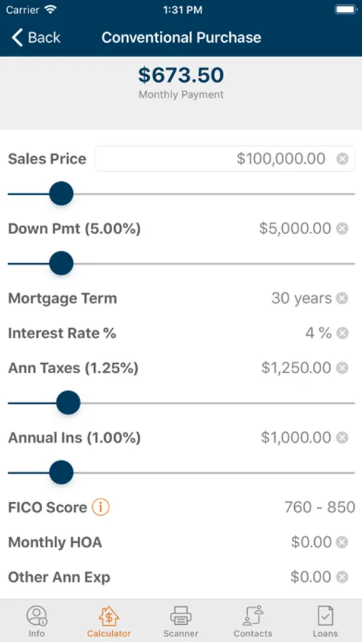 The calculator is quick and easy to use. Use the app to calculate New Home or Refinance FHA, Conventional, Jumbo, Rural, and VA loans. Affordability calculations can be done to determine what size of loan works for you. Enter a few parameters such as the sales price, insurance and tax amounts, and SimpleNexus will calculate your monthly payments. It handles all the details of calculating necessary MI and required down payment amounts by understanding the loan type you are looking to perform. When you are done with your mortgage loan calculation, save the quote for later or contact a qualified mortgage broker right from inside the app! SimpleNexus Mortgage Calculator Features: