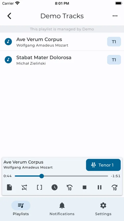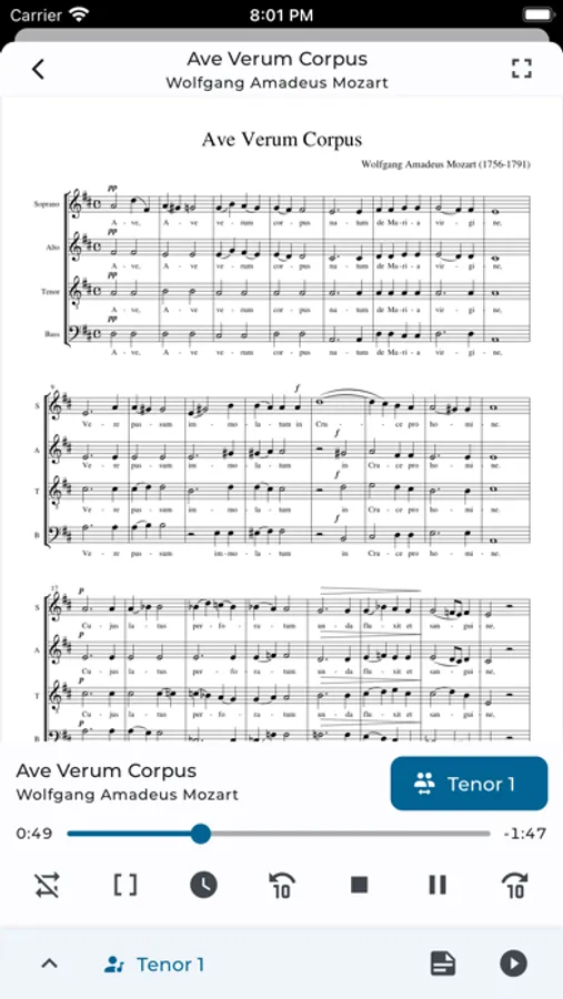The Choir App syncs choir resources to your phone or tablet and provides an interface with a combined pdf reader and mp3 player.