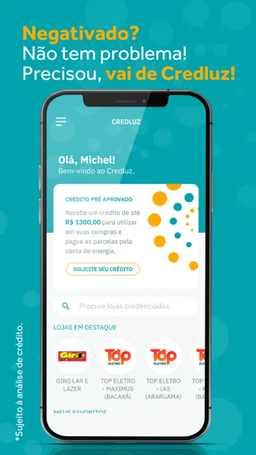 O CredLuz é uma solução de crédito para comprar de forma prática e sem burocracia, mesmo para quem está negativado*. Você acessa o aplicativo, faz o seu cadastro e sendo aprovado tem o seu limite liberado para usar, pagando as parcelas na sua conta de energia, em até 24x, para facilitar ainda mais a sua vida!