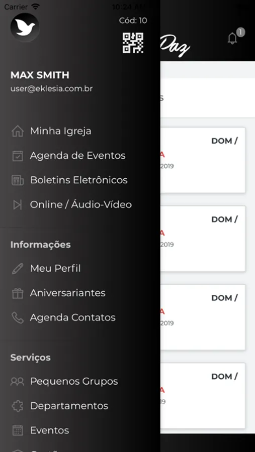 * No item "Meu Perfil" você poderá atualizar seus dados cadastrais na Igreja;
