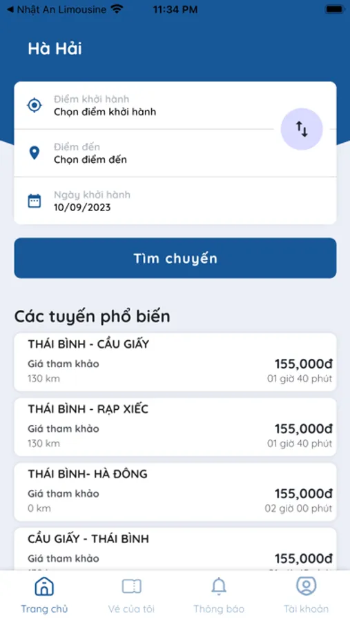 Vé Xe Thái Bình – Hà Nội của Công ty cổ phần kinh doanh dịch vụ vận tải Nam Hà Hải