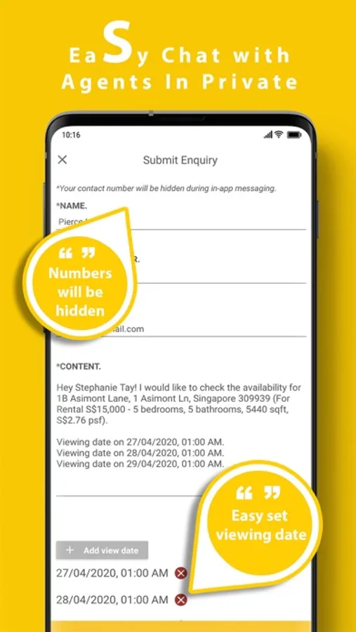 - Set Viewing Date: Fixed your Viewing Date with agents in just 1 message.