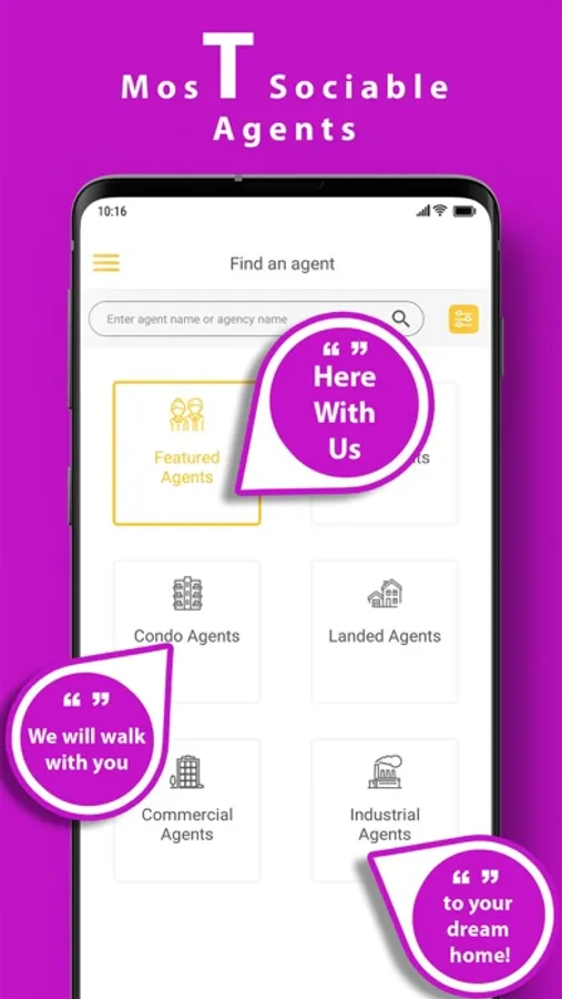 - Find Agents: Search for your Real Estate specialist according to your area of interest in our approved database.