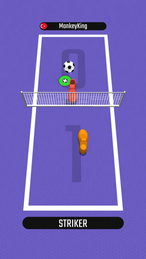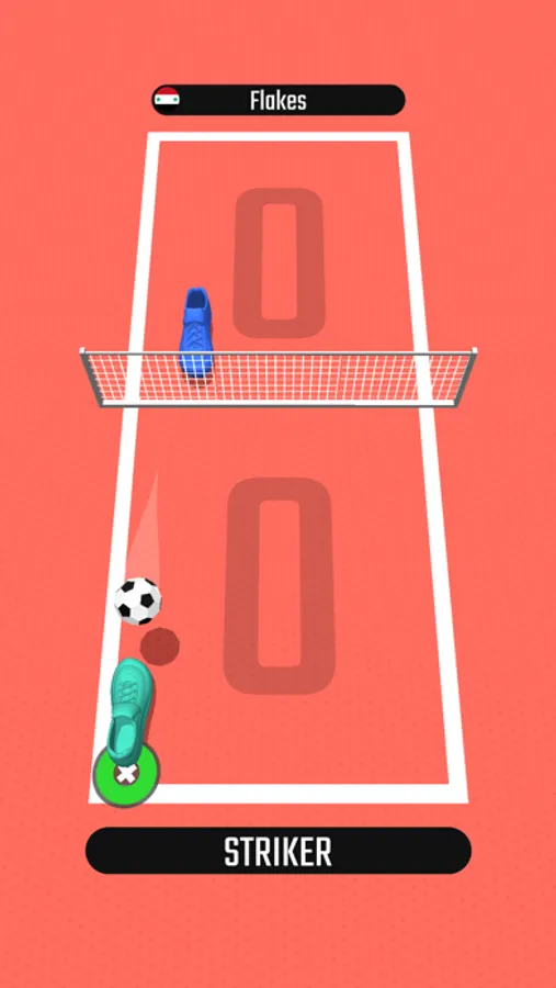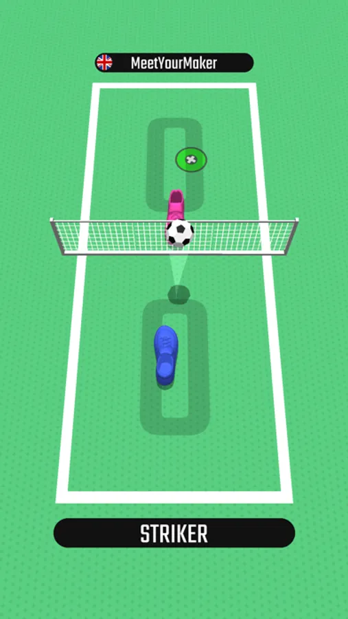 Hold the foot under the ball! Kick the ball into opponent side to score!