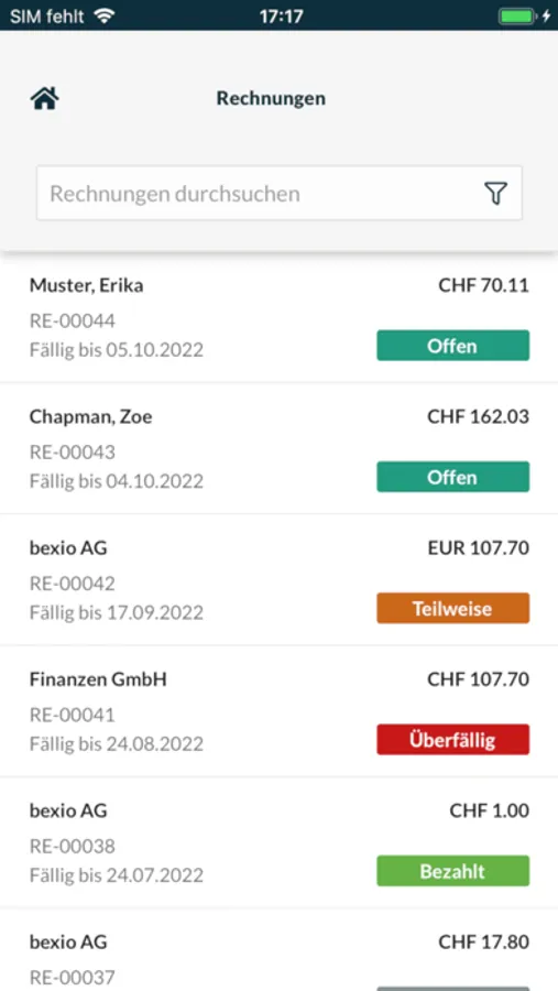 ! If certain functions of bexioGo are not available to you, please ask your bexio administrator to authorise these features for your bexio user account (missing permissions for your user in bexio itself) or the function is not part of your current package.