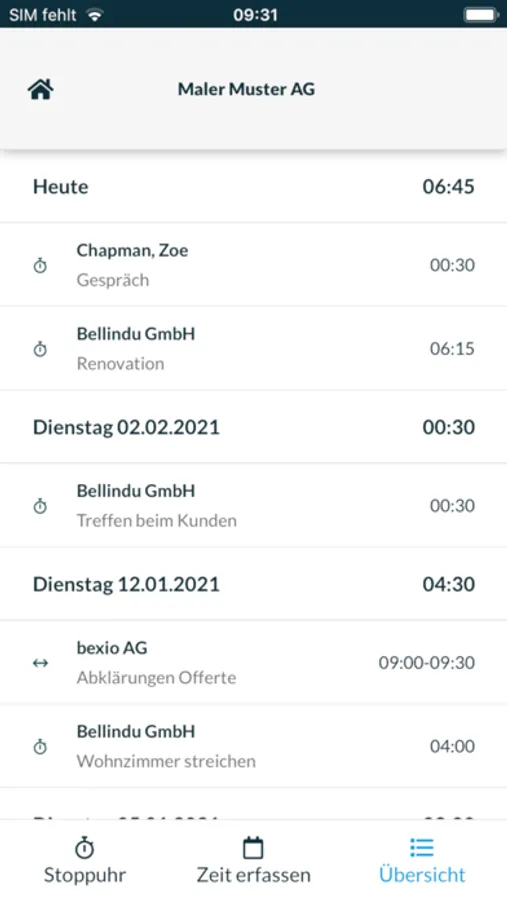 * Track times on the Go (for «Pro» and «Pro+» packages): Track stopwatch-, duration- and From/To times directly on your phone and process them in projects from your computer later on.