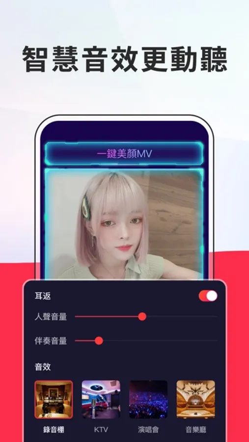 一鍵智慧混音修音調key,多種演唱會音效調音伴奏伴唱,體驗karaoke沉浸式聽歌