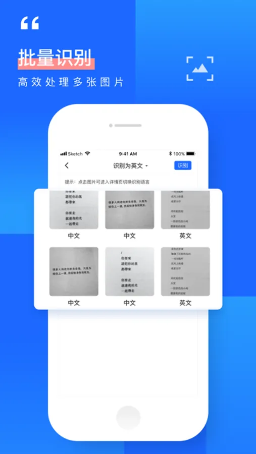 -批量识别:同时拍摄多张或者从相册选择图片,一键识别,省时省力