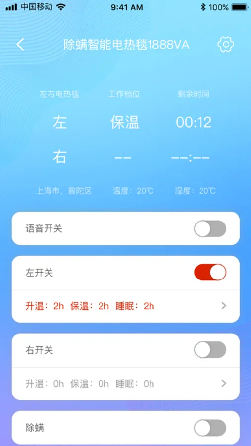 彩虹智能WiFi电热毯,不仅仅是加热的电热毯,电热毯与家里WiFi链接,就可以使用APP远程操控,如:开启、关闭,设置档位及时间、预约加热等。实现无需到床前,即可开启电热毯加热;也不再担心离家后忘记关电。