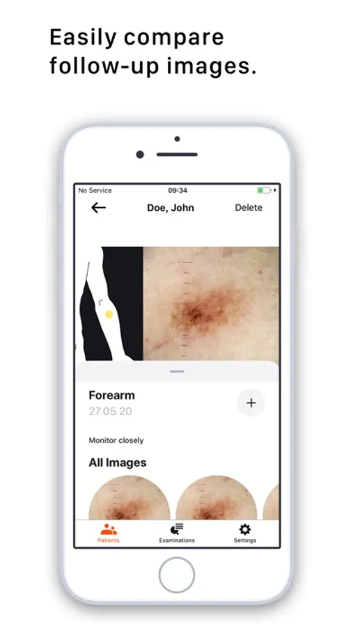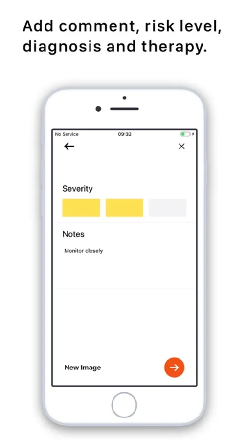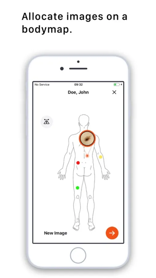 This app allows you to create crystal-clear images, place them on a bodymap and annotate them with comments, risk levels, an indication, a diagnosis and treatment.