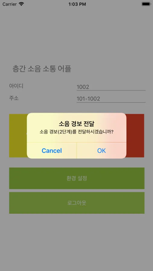 - 피해상황 통보를 통해 층간소음 설정강도를 변경할 수 있습니다.