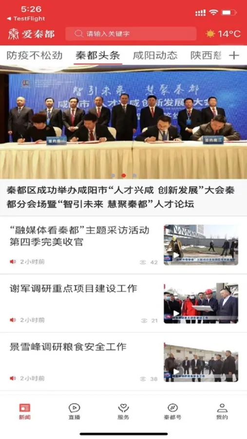“爱秦都”手机APP作为咸阳市秦都区融媒体中心主办的“新闻+政务+服务”综合平台,是权威的舆论宣传主阵地。开设了新闻、直播、电视、广播、服务、“爱秦都”等栏目,整合了区域内网站、微信、微博、短视频等自媒体和部门、镇(办)、社区、村组政务服务资源。用户可通过客户端,第一时间了解秦都政治、经济、民生、服务等方面的最新动态,同时提供各种便民服务,还可参与实时互动,实现“一端在手,尽享智慧”。