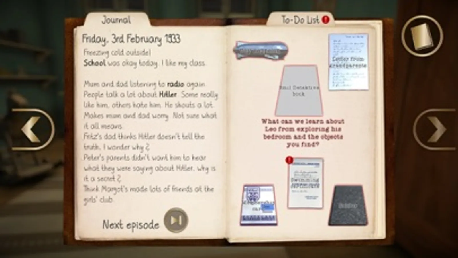 Move through 10 richly animated episodes in the touching story of Leo. You are Leo. Your start point is a happy childhood in Berlin in 1933. Advance from there through 5 years of events that shook the world — and explore how they change the life of this one Jewish boy. Along the way, meet Leo's friends Fritz, Peter and Margot. Walk the steps Leo takes, leading up to the November Pogrom in 1938 — ‘Kristallnacht’, the night everything changed. Then wrestle with a family decision: should Leo stay with his mother and father in Nazi Germany? Or escape on the famous ‘Kindertransport’? What is it like to face life as a child refugee, forced to leave home for a new life in a strange new country — all by yourself? The story game ends here. But the journey will carry on in your mind.
