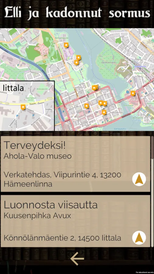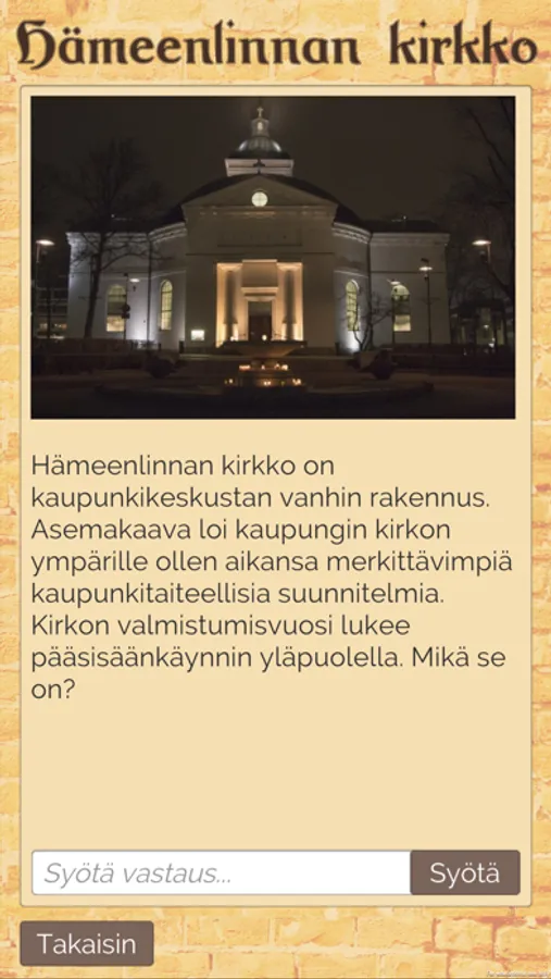 VIKKE-sovellus on Virtuaalinen Kulttuurimatkailu Kanta-Hämeessä -projektin pilottisovellus. Lisätietoa projektista löydät osoitteesta https://www.hamk.fi/vikke