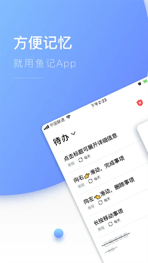 鱼记,一款轻量高效的个人信息数据规划管理工具,包括待办事项(Todo)、密码存储(Password)、卡包管理(Card)、随身记账(Account)、通讯录同步(Sync)功能。鱼记集计划表、备忘录、日程清单、记账、笔记、便签多种实用功能于一体。