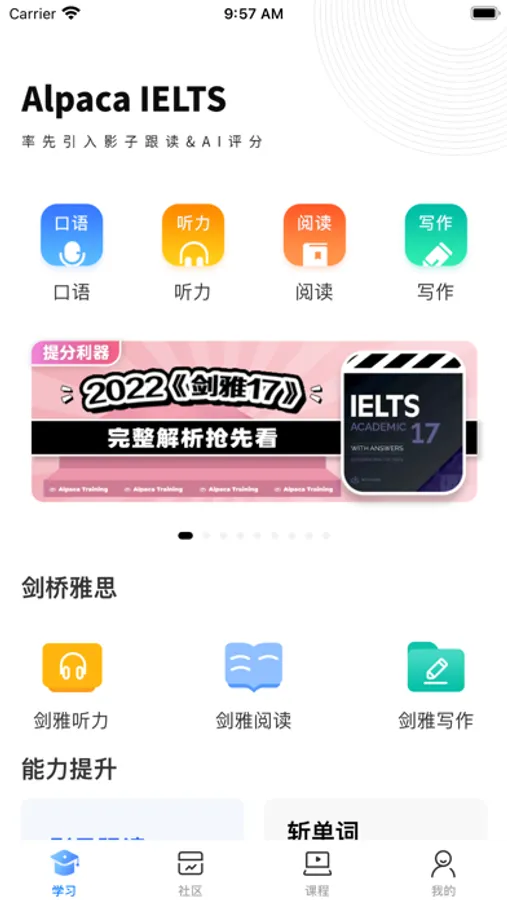 羊驼雅思专业版将持续规划更多高效实用练习模式,如考官模拟面试,口语打分、AI测评、口语答题合成测评打分等一系列功能,为雅思考生提供更多维度的提升方式。