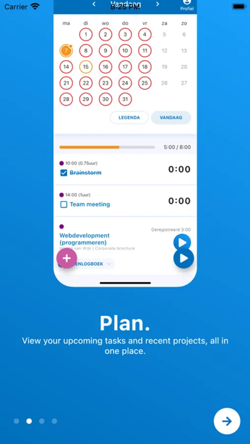 Met de Time Tracker app van Gripp hou je eenvoudig je uren bij, en heb je op elk moment van de dag een up-to-date overzicht van dingen die je nog moet doen. Of je nu werkt met een vooraf bepaalde planning, of achteraf snel je uren wilt schrijven: het kan met de Gripp Time Tracker app.