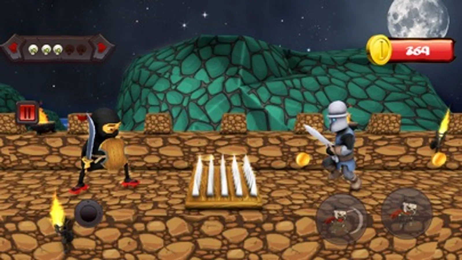 This time survival games production presents classic 2.5D game of action with adventure, Revenge story of a little samurai ninja fighter, revive queen of your state. Kill all the ninja mutant enemies who come in front of you, smash these enemies with a ninja sword hero. Collect coins from subways, bridges to customize your kungfu ninja fighter costume and swords with those golden coins. Go with the story and find keys to unlock the temple entrance. Be a tricks master while crossing the bridges and climbing like the fight hero swings and pay attention while crossing fire checkpoints in the temple. Simple and smooth controls to run on the subway and jump like swings.