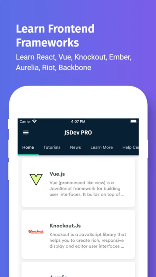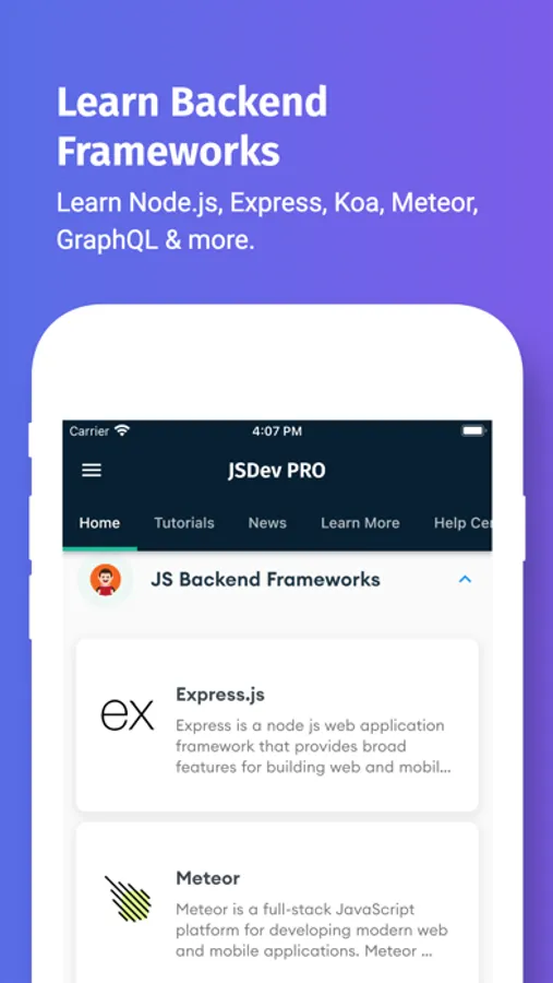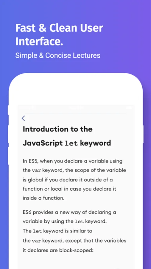 Become a Job Ready JavaScript Developer. Learn JavaScript Coding and Master Front-end & Back-End Development. Learn Basic to Advanced Javascript Programming + ES6 & ES.Next + Angular + React + Vue.js + Ember.js + Backbone.js + Aurelia + Knockout.js + Riot + Express.Js + Koa.js + Meteor.Js Jquery + Jquery UI + AJAX + Rxjs + Ionic + NativeScript + React Native frameworks tutorials and more completely OFFLINE & Ads-Free. Also, our team is constantly working on more JavaScript content and more tutorials on frontend & backend frameworks will be added very soon.