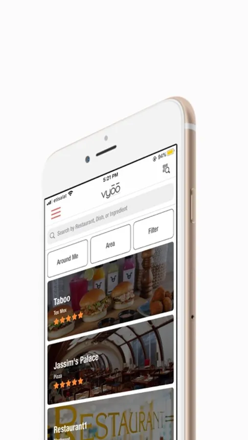 Search by dish or by restaurant; let Vyoo find the best option for you.