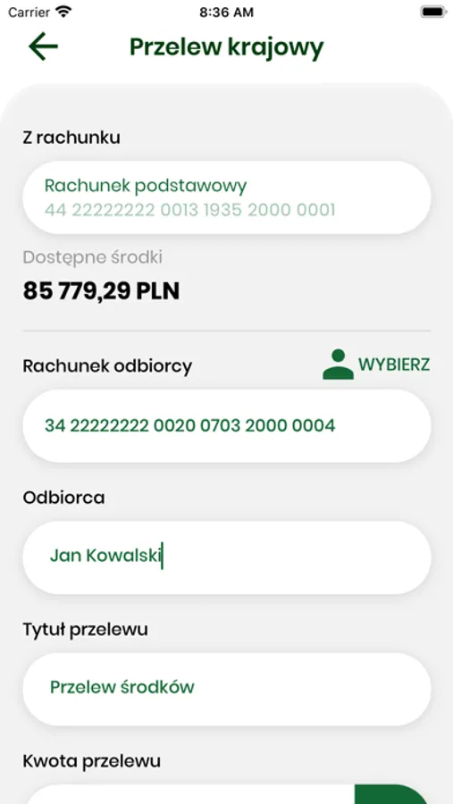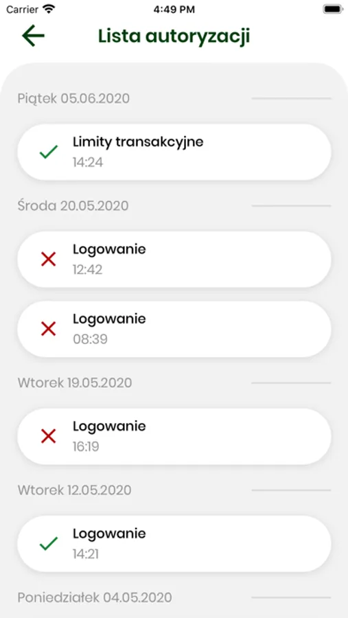 - wyświetlanie szczegółów każdej autoryzowanej operacji (m.in. kwoty operacji, danych odbiorcy przelewu),