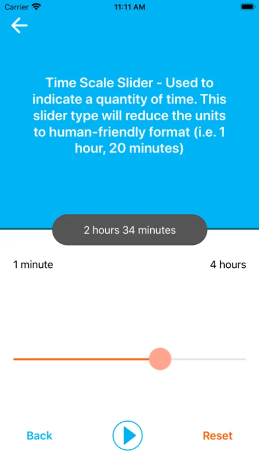 - Scalable Slider with Configurable precision (i.e. Indicate how you feel on a scale of 0.00 to 10.00, OR How many servings of vegetables did you consume in half-serving increments.)